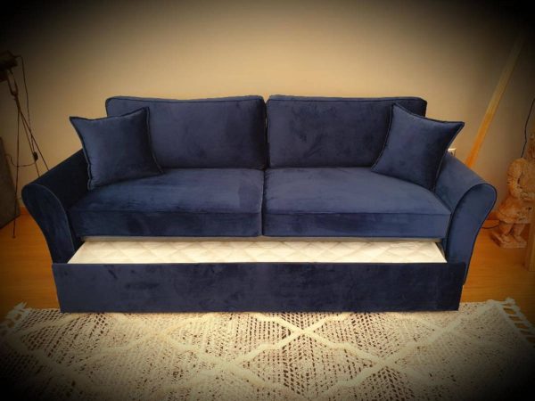 Καναπές κρεβάτι μοντέλο “Λυδία “με συρρώμενο μηχανισμό ελληνικής κατασκευής με 10 χρόνια γραπτή εγγύηση και ορθοπεδικά στρώματα Linea Strom.